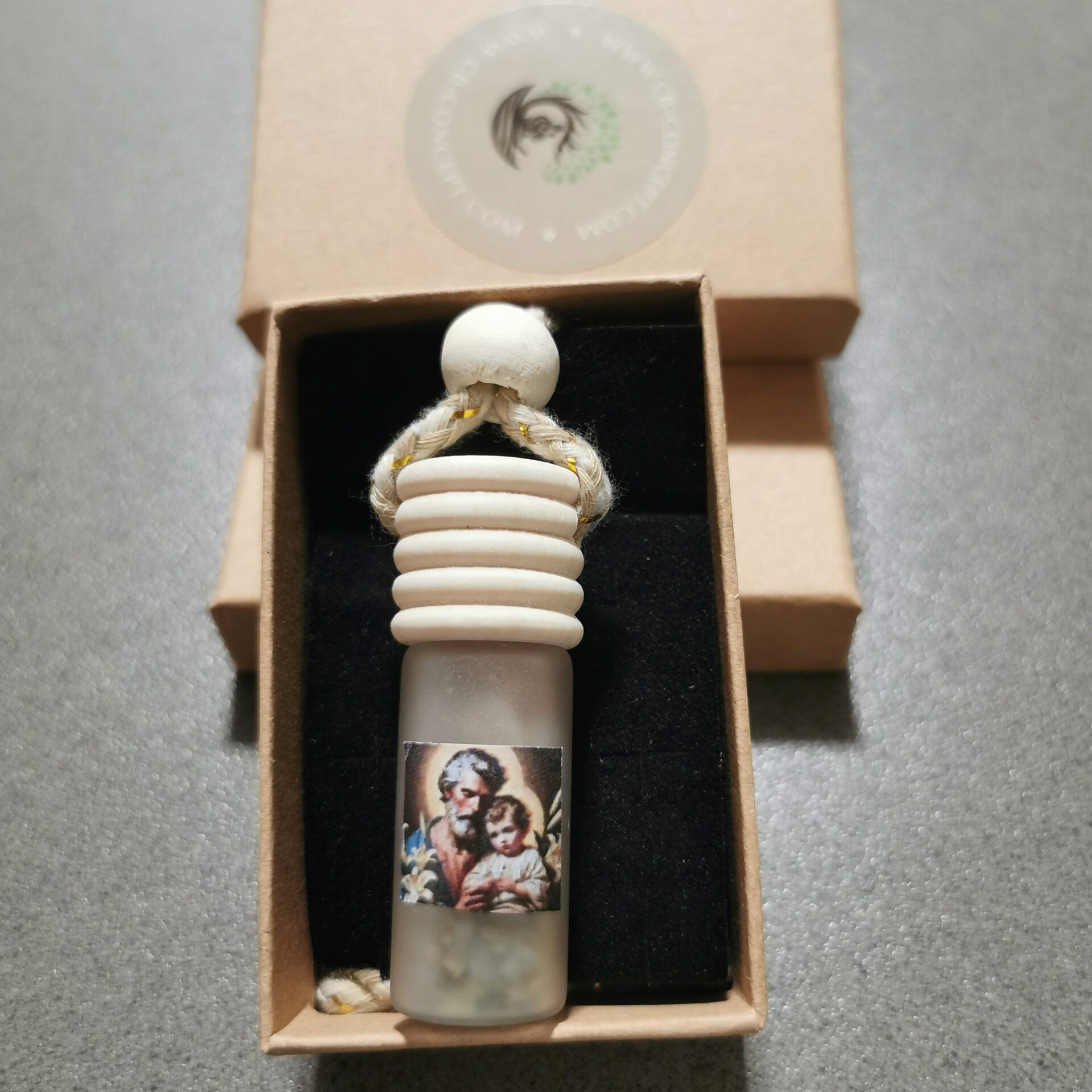 St Chrisophe saint des voyageur, une fiole qui peut êtres pendu dans la voiture mise dans le vide poche ou attaché au porte clef
